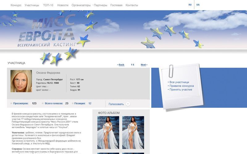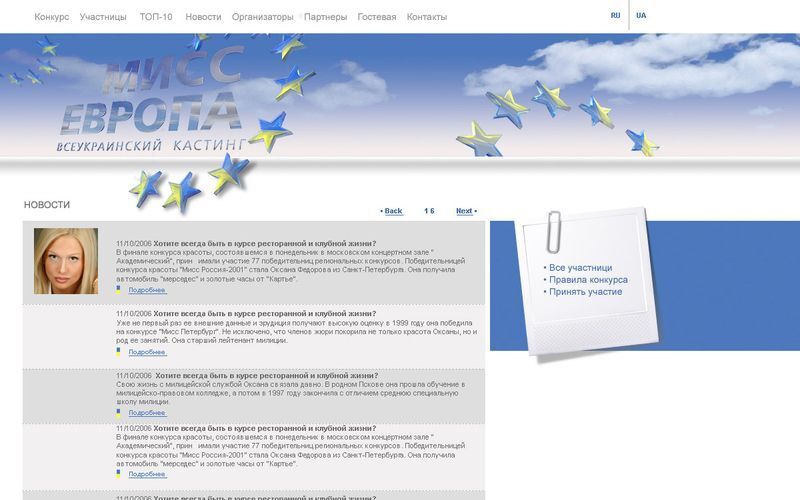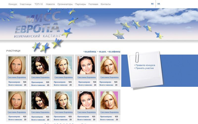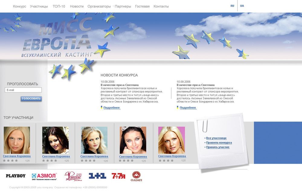 Разработка сайта для всеукраинского кастинга Miss Europe